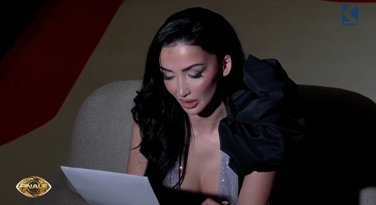Finalistja e Big Brother VIP Kosova 3, Xheneta, ka qarë me denesë derisa po e lexonte letrën e saj mbi përjetimet në shtëpinë më të famshme në vend.