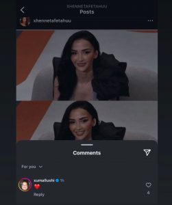 Xumi i ka komentuar një zemër të kuqe në postimin e saj në rrjetin social “Instagram”, por më pas e ka fshirë menjëherë.