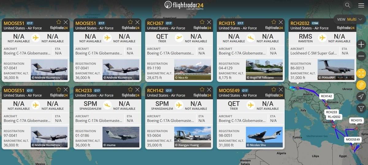 Të dhënat nga Flightradar24 dhe burimet e inteligjencës sugjerojnë se mobilizimi i 24 orëve të fundit tejkalon çdo lëvizje të kryer që nga fillimi i luftës më 28 shkurt.
