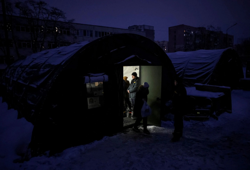 Një ndërprerje e energjisë elektrike goditi Kievin të shtunën pas një breshërie të re sulmesh ruse që shënjestruan rrjetin elektrik të Ukrainës. (Anatolii Stepanov/Reuters) -